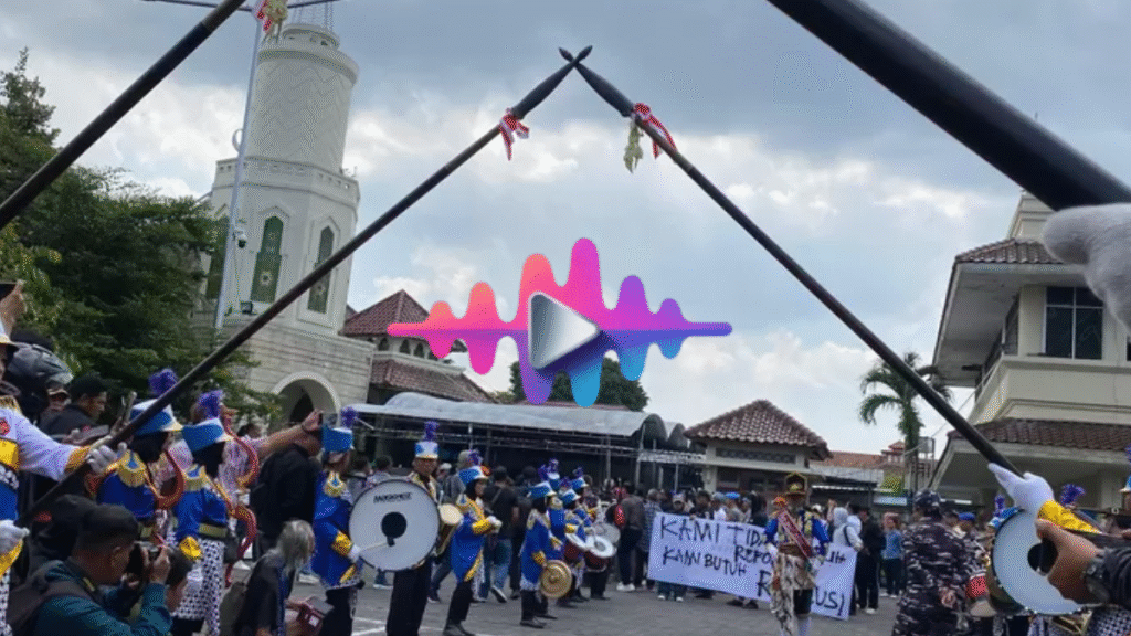 lagupopuler – Ratusan massa hadir di depan gedung DPRD Daerah Istimewa Yogyakarta (DIY) dengan mengenakan pakaian serba hitam. Kehadiran mereka merupakan bentuk protes terhadap penggunaan iringan musik dalam acara resmi pemerintah. Aksi ini berlangsung dengan pengawalan aparat kepolisian untuk memastikan keamanan dan kelancaran lalu lintas di sekitar lokasi. Massa membawa spanduk dan poster sebagai simbol tuntutan agar pemerintah menghormati adat dan norma lokal.